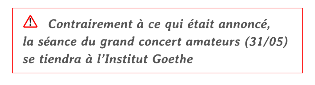 Le traditionnel grand concert des pianistes de PianoThé se tiendra à la salle Witkowski le 31mai 2026.